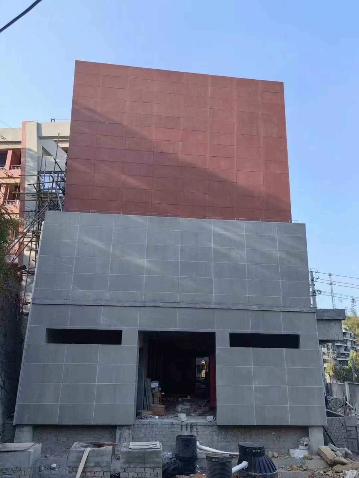 浙江麗水外墻,采用我們的HDF裝飾水泥板,尺寸為1220*2440,厚度為18mm,顏色為磚紅色和淺灰色。這種板防水防火,顏色和尺寸也可以根據(jù)您的喜好定制。效果比石頭好。歡迎各位蒞臨指導(dǎo),共同推動(dòng)纖維水泥板行業(yè)的發(fā)展。
